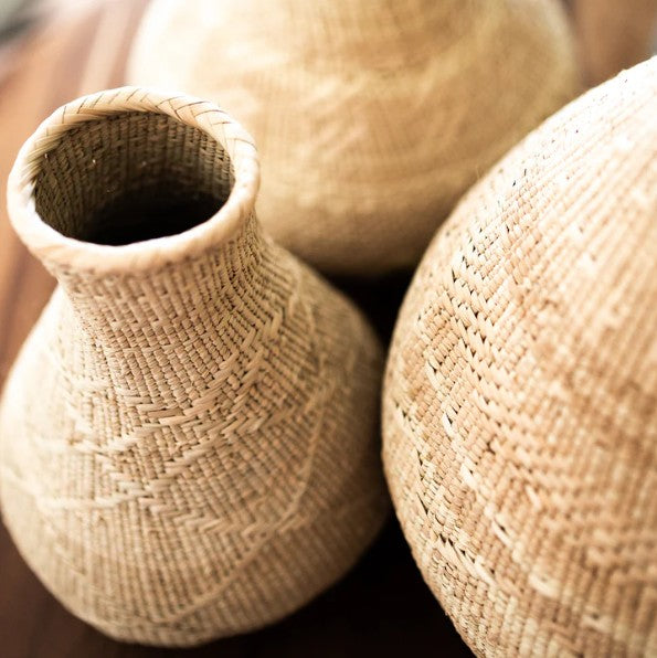 Crafted by Batonga women in the Binga district of Zimbabwe, each Binga Heritage Basket reflects generations of artistry and purpose. Traditionally used to winnow grain, these bowls are coiled by hand using sustainably harvested ilala palm leaves. Each purchase supports artisan livelihoods and helps preserve the stories woven into every stitch—making them a true gift, or *nyami*, from maker to home.