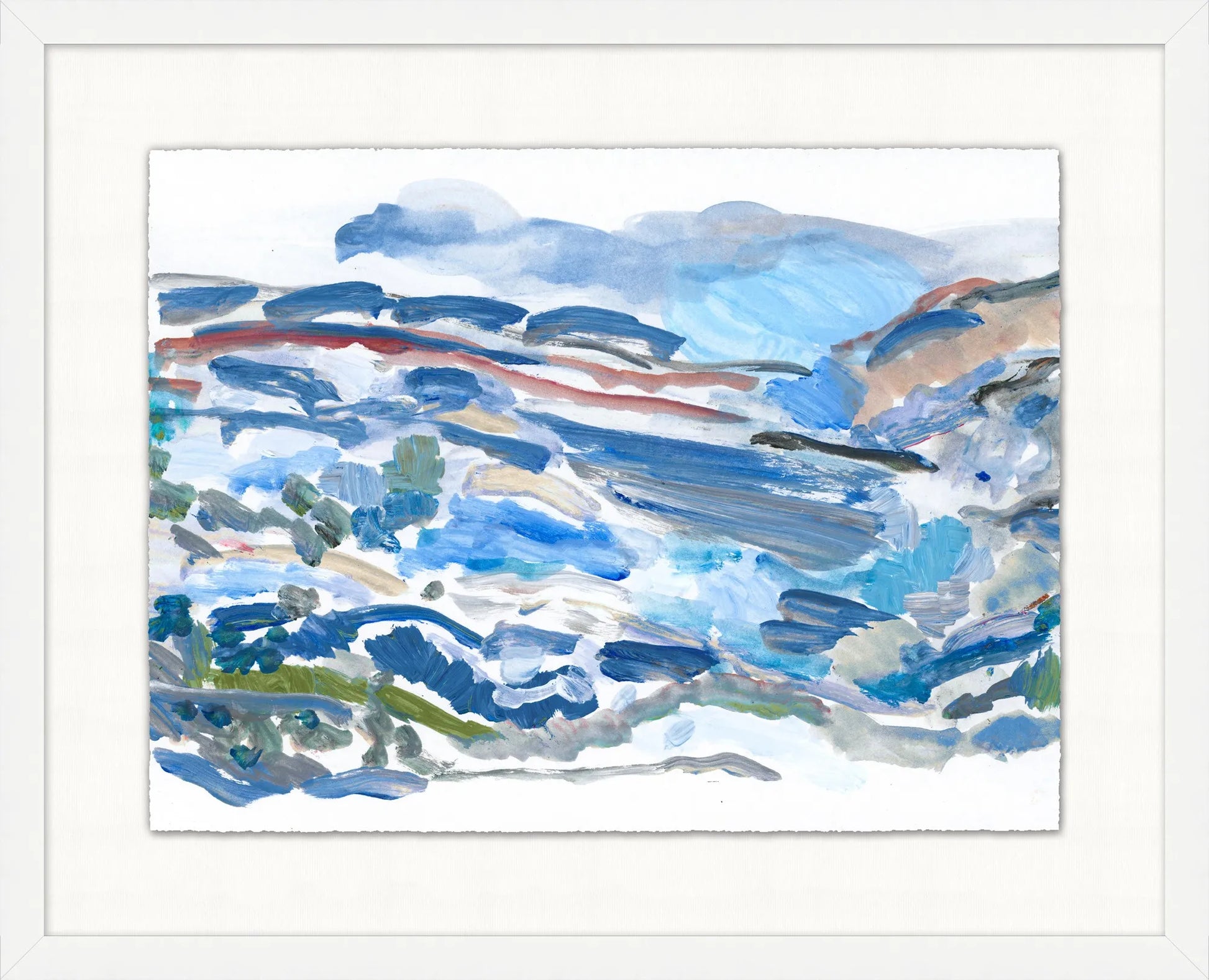 Experience the endless allure of the horizon, captured in layered blue and earthy tones.