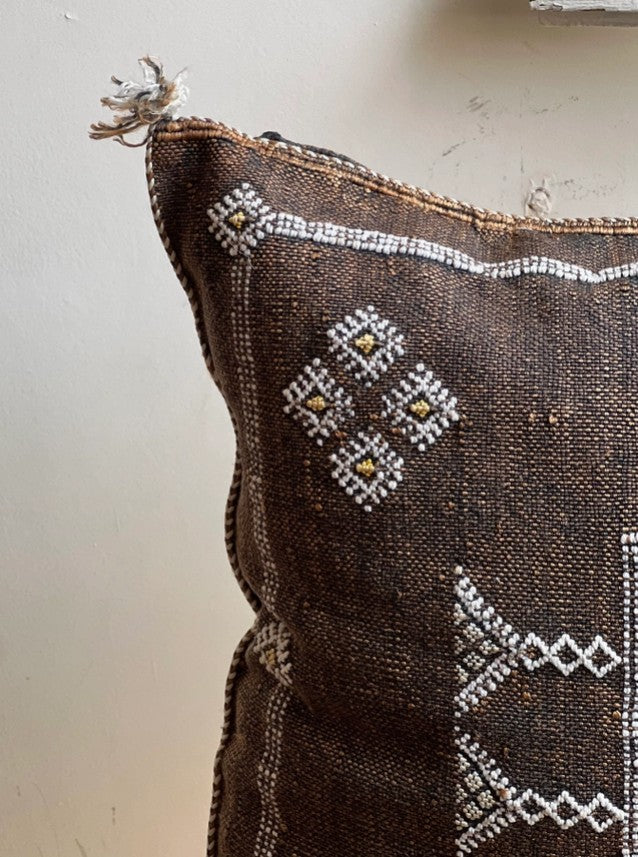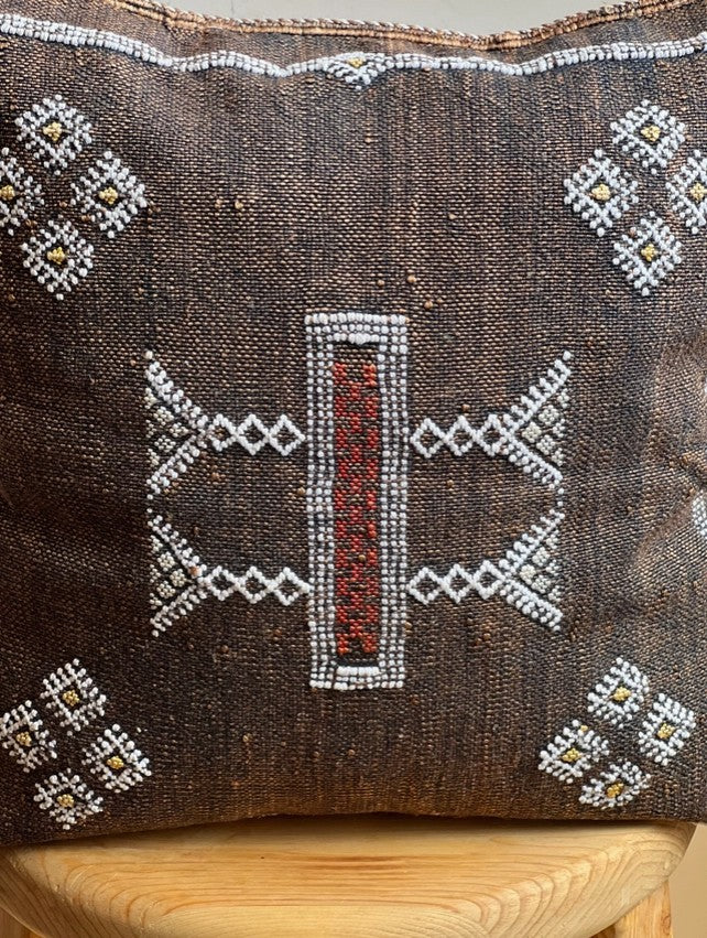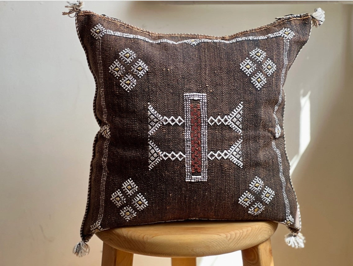 Woven from Sabra cactus silk by skilled Moroccan artisans, each pillow cover in the Dune series balances rustic texture with refined detail. Available in a variety of hues inspired by natural desert landscapes. The hand-stitched embroidery and tonal dyeing make every piece unique.