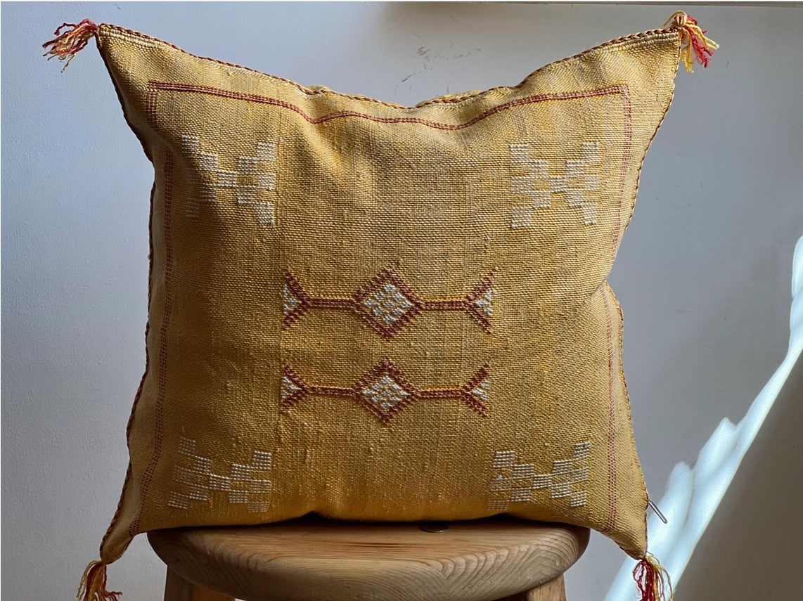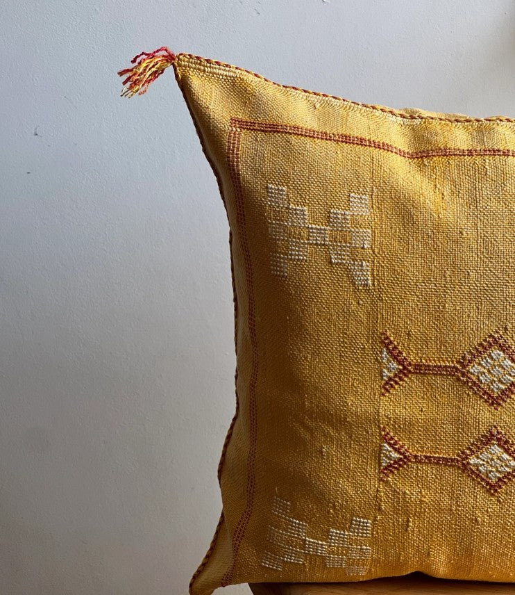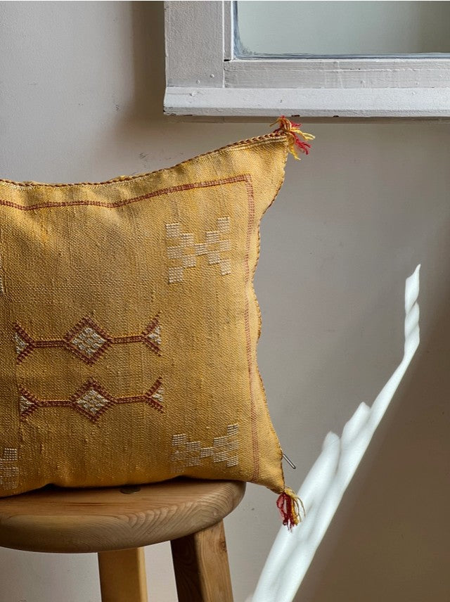 Woven from Sabra cactus silk by skilled Moroccan artisans, each pillow cover in the Dune series balances rustic texture with refined detail. Available in a variety of hues inspired by natural desert landscapes. The hand-stitched embroidery and tonal dyeing make every piece unique.