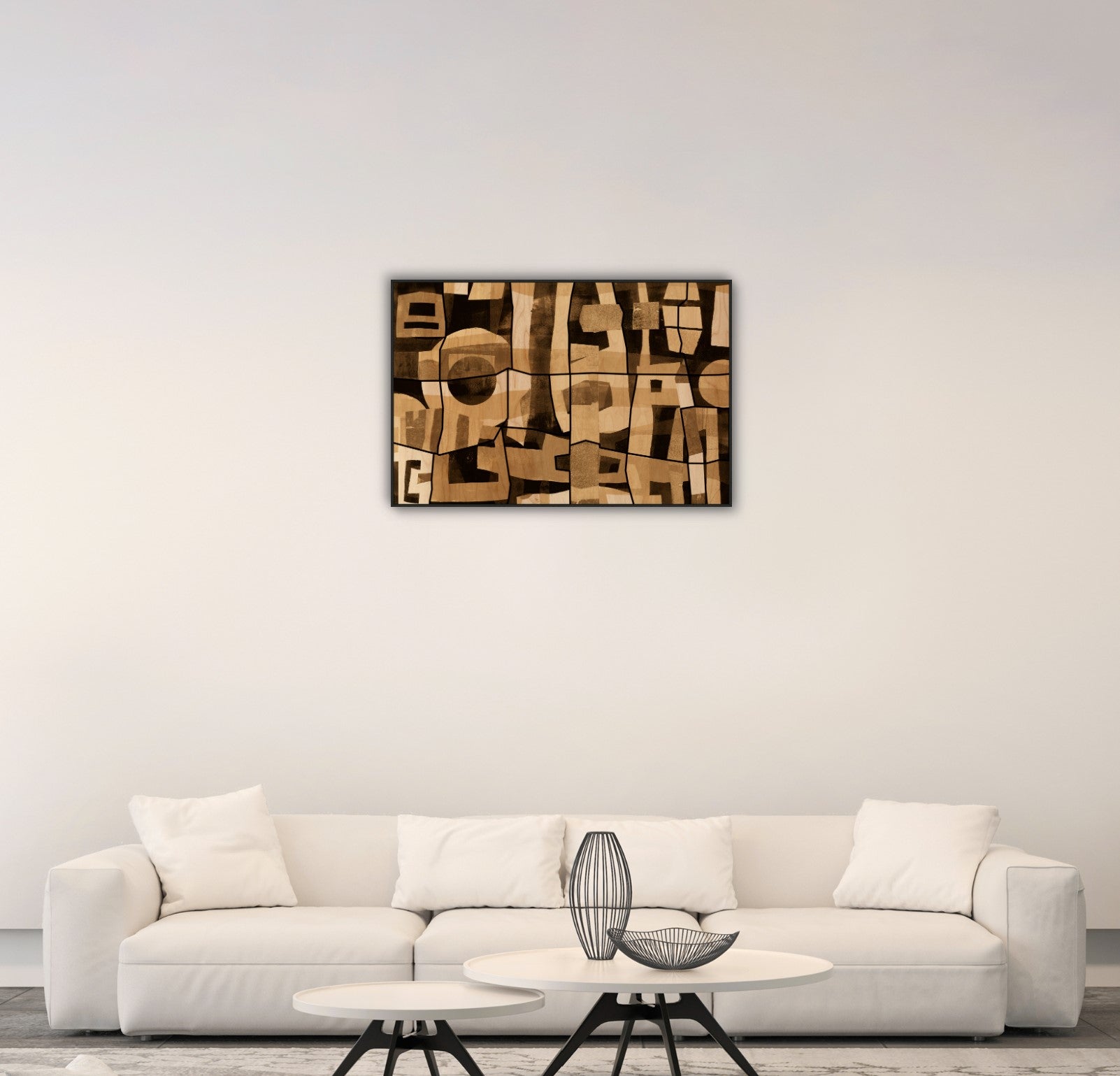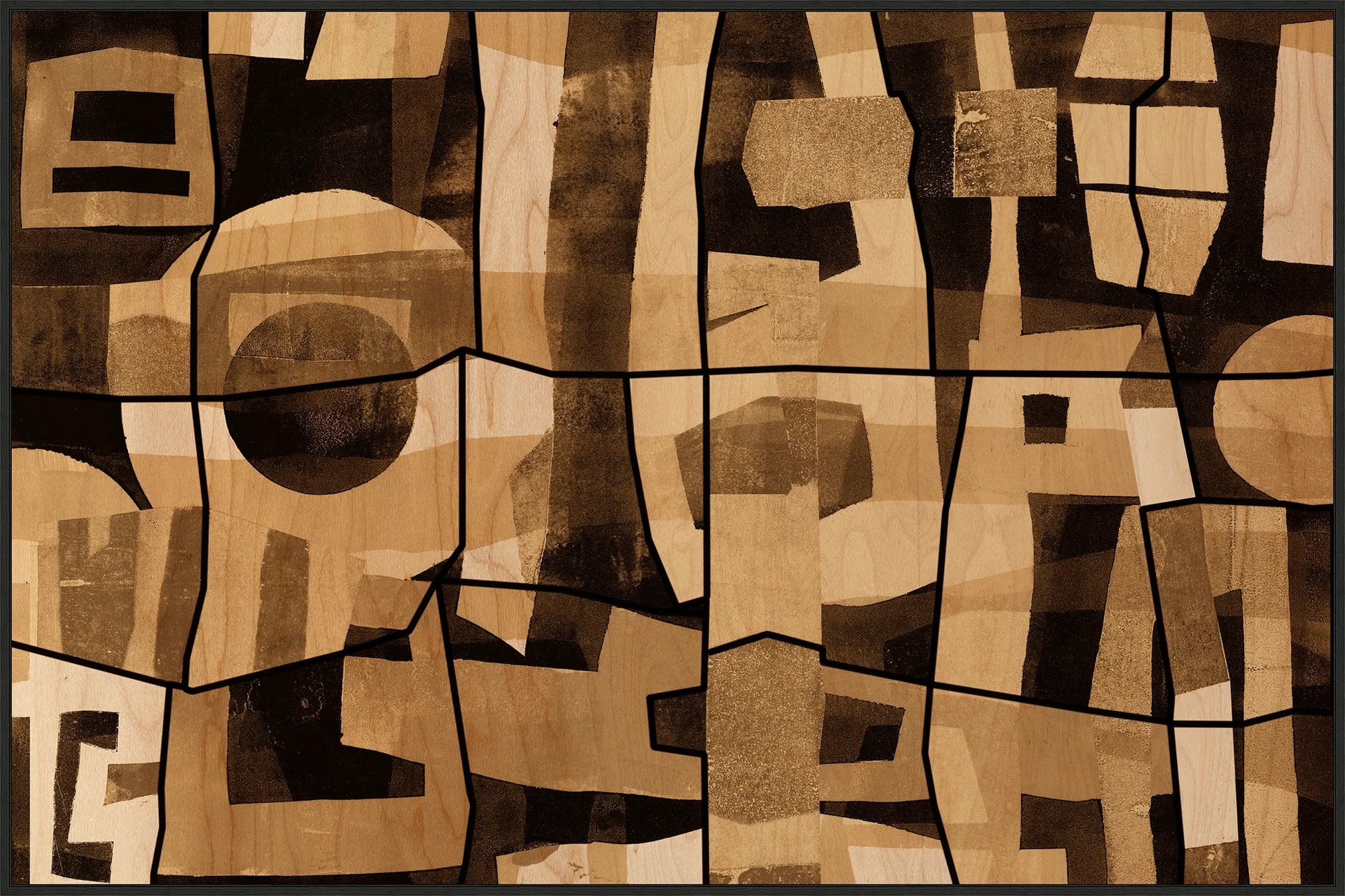 Mid-Century Wood Collage 2 continues the mid-century inspired narrative with organic wood textures and structured shapes. A dynamic yet warm composition that anchors modern walls with visual interest.