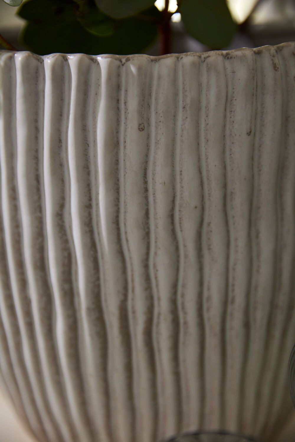 The Riptide Sculptural Vase evokes the shifting textures of sand and sea with a gently undulating surface. Its rounded body and soft matte finish feel both organic and architectural—perfect for neutral, sculptural styling.